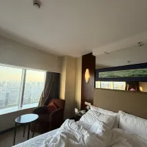 地下鉄を降りたらすぐホテルで、立地が本当に便利でした!部屋は高層階で、窓を開けると煌めく夜景が広がり、窓を閉めたくなくなるほど美しかったです。さらに驚いたのは、部屋がとても清潔で、リネン類も清潔感のある良い香りがしたことです。フロントのスタッフの方は太陽のような笑顔で、チェックイン時に天気のことや一番良い観光スポットを教えてくれました。設備も全て新しくて使いやすく、このサービスと細部への配慮には本当に感動しました。とても快適に滞在できました。