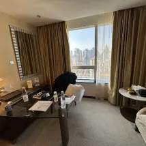 老舗の高級ホテルで、清潔で快適、嫌な臭いもありません。ロケーションも良く、浦東空港から地下鉄2号線に乗って少し歩けば着きます。窓からは高層ビル群が近くに見え、私は公演を観に来たのですが、地下鉄で東方音楽庁まで1駅でした。ホテルのスタッフは皆親切で、朝食も美味しかったので、次回もまた利用したいと思います。