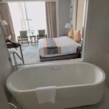 1ヶ月で9回宿泊しました。全体的な経験は非常に良かったです。立地が抜群で、食事や買い物にもとても便利です。 2回ほど、外出するのが面倒でテイクアウトを注文しましたが、ロボットがすぐに部屋に届けてくれました。部屋にあるコードをスキャンして食べ物を注文することもできます。ホテル2階の日本食もとても美味しいです