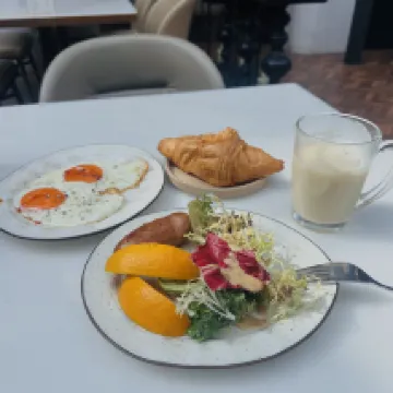想像以上に満足できました。というのも、このプラットフォームで多くの悪いレビューを見ていたので、実際の滞在体験は予想をはるかに上回りました。小さいながらも美しいホテルです。マットレスはラテックスで、枕は種類豊富、ヘアドライヤーはダイソンでした。ミニバーと冷蔵庫には飲み物や冷たい飲み物がたくさん入っており、寝る前には蒸気アイマスクをいただきました。全体的にアールデコ様式で、古典的でありながらモダンな雰囲気です。部屋は広くありませんが、うまく配置されており、一人旅にはとても居心地が良いと感じました。朝食も美味しかったです。種類は多くありませんが、十分な質で、焼きたてのクロワッサンはサクサク、目玉焼きは完璧な焼き加減、黒胡椒風味のポークソーセージは食べ応えがあり、新鮮なフルーツや野菜サラダ、豆乳もあって、お腹いっぱいになりました。