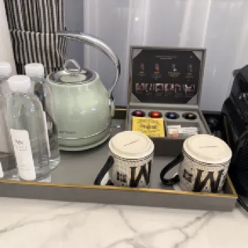 お部屋のデザインがとても素敵で、アメニティもきちんと整頓されていて清潔でした。特に気に入ったのは、カップのデザインです。ぜひ購入したいと思っています。朝食はセットメニューとビュッフェ形式で、種類は多くありませんでしたが、栄養は十分でした。ミニバーの飲み物は無料で種類も豊富でした。スタッフの皆さんもとても親切で、顔を合わせるといつも笑顔で挨拶してくれました(^-^)👍 次回もぜひここに泊まりたいです。
