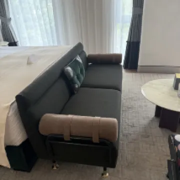 このホテルはとても快適な環境で、ロビーの内装は私の好みのスタイルでした。周囲の環境も心地よかったです。部屋はとてもきれいに清掃されており、シーツは新しく交換されていて、全体的に清潔でリラックスできました。サービスも行き届いており、スタッフの方々は親切で、出前も嫌な顔一つせず部屋まで届けてくれました。滞在中はとても気持ちよく過ごせ、チェックアウト時にはお土産までいただきました。全体的に非常に快適な滞在でした。
