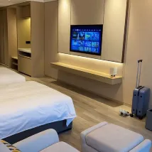 昨年の展示会の際に宿泊させていただきましたが、今年も宿泊させていただきました。フロントデスクの女性はとてもフレンドリーで、特にシャオ・チェンは熱心で忍耐強く、思いやりがあります。部屋の装飾はとても温かみのある木製スタイルで、とても清潔で新鮮で、とても広々としています。昨年私を感動させたロボットは、今も食べ物を届けるために精力的に働いています。ホテルはコンベンション アンド エキシビション センターから徒歩わずか 1.7 キロ、地下鉄にも非常に近く、虹橋空港または鉄道駅からはタクシーでわずか 3 ~ 4 キロです。展示会に行くときはここ。友達に勧めました。