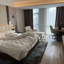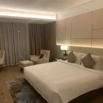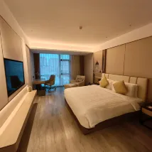 部屋は清潔、余計な物ない分更に広く感じます。内装はシンプルで好みのタイプ。ベッドは2mのキングサイズ、硬さもよく、ぐっすり快眠出来ました。 フロントも親切でした。 朝食の種類同等ホテルに比べ若干少ない気がするが、美味しくいただけました。 ロケーションについて虹橋駅と空港はタクシー15分から20分程度、同じホテル道挟んで2つあり、チャックインの時どっちに行けばいいのか注意が必要、アクセスは便利かと思いますが、ホテル周辺飲食店やコンビニすらありませんので、長期の滞在は少し難しいかも。 総合的にいいホテルですが、周りに店がないので行く前にどっかで食料など調達する必要があります。