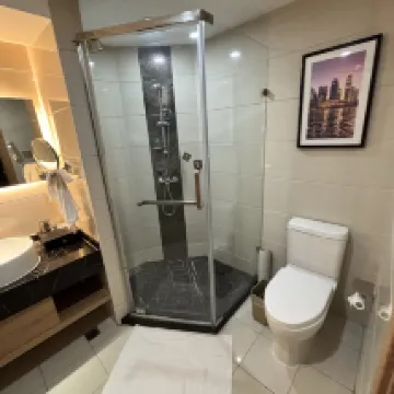 上海ディズニー後の宿泊で利用しました。 思ったよりも清潔感がありました。部屋はさほど広くないですが、キャリーケースを広げるには十分です。 日本人ですが、シャワー温度調整、水圧等は十分だったように感じます。ドライヤーの風量などもGOODです。 特に気に入ったのはジムでした。 朝方の利用でしたので、他に人がおらずトレーニングに専念できました。マシンも新しい方だと思います。 また最後に、中国本土で電話をかける用事ができたため、フロントの方にお願いしたところ快く電話機を貸してくださりました。ありがとうございました。