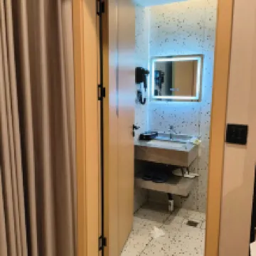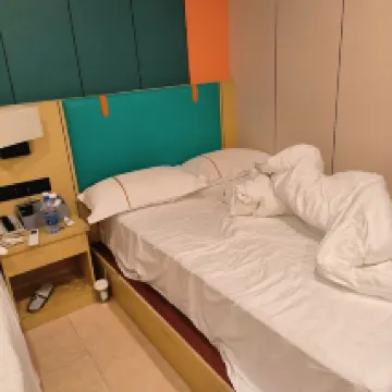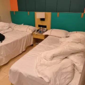 房間小的可憐,連個桌子也沒有,洗水池就在床的旁邊,如果不小心很容易把水濺到床上。樓上的空調水一直滴到窗户的防盜網上滴答了一整晚。隔音效果極差,半夜總是聽到旁邊敲門和走動聲。被子還是冬天的超厚被,我不明白為什麼大夏天就不能換成薄的。不蓋被子冷,蓋了被子一會又被熱醒。睡到半夜被蚊子咬醒,小朋友也被蚊子咬的一直翻來覆去。起來找電蚊香,發現房間裏連個電蚊香都沒配。煎熬了一晚上幾乎沒怎麼睡好。早上七點多隔壁在洗澡開水龍頭的聲音就像在房間用燒水壺一樣,我懷疑房間和房間之間都不是實心牆,不然隔音是怎麼做到那麼差的?