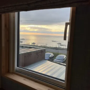 知床モンスーンホテルは、オホーツク海に面しており、夕日の美しさがとても素晴らしいです。ウトロバスターミナルからは徒歩12分、知床五湖までは車で約25分、知床自然センターまでは10分と大変便利です。ホテルの温泉もとても良かったのですが、近くに商店街がありません。