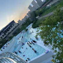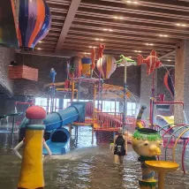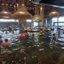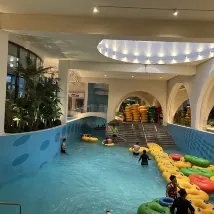 - Level 1 has outdoor pools, indoor pools, whirlpools, children’s water park and access to the wave park, which opens 4x a day for half an hour.
