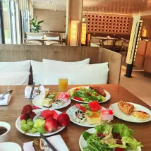 - Day of checkout a delicious breakfast with much variety of cooked and fresh dishes, fruits, juices and coffee and sweets is served from 7-10am.