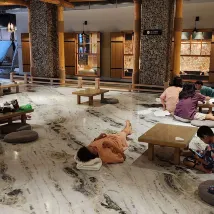 - You take off your shoes, exchange them for slippers they offer and store your shoes in your locker. You get a key you take inside which is for free.