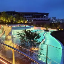 - It has 4 levels with indoor and outdoor pools and hot tubs.
