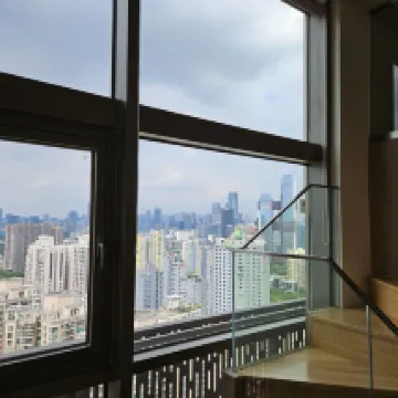 複式Loft型的房間,客廳的落地玻璃窗感覺開揚