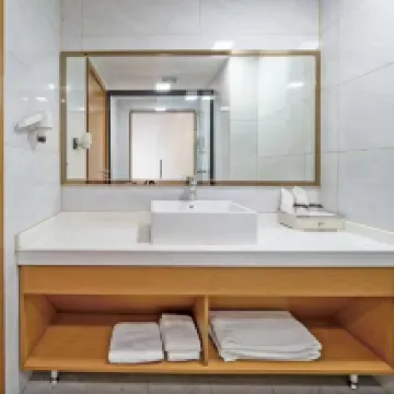 設備:アメニティが充実しており、使い捨てのアメニティやボトルウォーター2本も完備。バスルームのお湯もたっぷり出て、シャワーとトイレが別々になっているのも良いですね。部屋全体のレイアウトも良く、快適に過ごせました。 清潔さ:部屋は清潔で衛生的で、とても居心地が良かったです。照明も多く、ナイトモードにも調整できます。 環境:日中はカーテンを開けると日差しが差し込み、道沿いですが窓を閉めると騒音もなく、とても静かでした。 サービス:ホテルが無料の送迎サービスを提供しているのは素晴らしいです。次回もぜひ利用したいです。