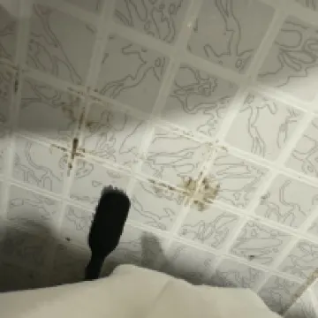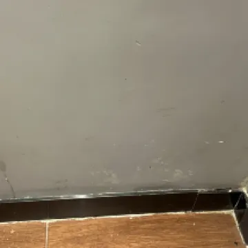 部屋は汚くて壁にはシミだらけでした(写真の通り)。エアコンをつけるとカビ臭く、部屋全体がじめじめしていて、布団を触ると湿っているように感じました。ベッドにはゴキブリまでいて、まさに「安かろう悪かろう」という言葉がぴったりです。