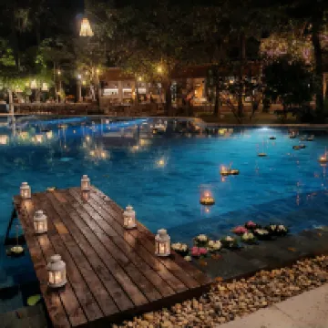 ホテルの場所は、賑やかなパブストリートとアンコールワットの遺跡の真ん中ぐらいで、どちらを行くのか移動距離が短くてよかったです。ただ、逆に言えばどちらも徒歩で行ける距離ではなく、常にトゥクトゥクを利用していかなければなりませんでした。ホテルの前にいつもトゥクトゥクのカップルが待機しているので、別にトゥクトゥクを呼ぶ必要はありません。 ホテルのスタッフのサービスは素晴らしく、レストランの食べ物も美味しくて良いです。プールは午後になるとほとんど木陰の中に入ります。暑い天気にはもっと良いと思いますが、私たちは1月に訪問しました 午後の遅い時間には、泳ぐのはやや寒いほどでした。 ただし、私たちはガーデンツインルームに泊まりましたが、ツインルームのベッドは非常に小さいです。 そして、何よりも私たちが泊まる4日夜を通して外で音楽音が響き渡りました。ホテルに問い合わせると、ホテルの内部で私は音ではなく、外部で私は音だと仕方ないと言って耳栓を提供してくれました。最初の2日は週末でしたが、隣の建物でコンサートをする感じの大きな音楽音が夕方に響き渡り、12時ごろになくなりました。その後は週末ではないので音楽音がないだろうと予想しましたが、夕方になると少し小さな音楽音が夕方に響き渡りました。残念ながら、ホテルの部屋は音楽の音を防ぐのに十分な防音を持っていませんでした。ホテルは快適で良かったが、継続的な音楽音のため良いスコアを与えることができなかったので残念です。