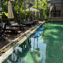 地元のパブやレストランに近い美しい宿泊施設で、パブ ストリートまで徒歩 10 分です。私たちはファミリー デラックス ルームを利用しましたが、3 人の友人が一緒に旅行するにはとても広くて広々としていました。朝食は素晴らしく、毎日変わる種類も豊富でした。プールは小さく、サンベッドの数も限られていますが、このような場所に来たら、プールサイドでリラックスする時間などありません。フロント オフィスのスーパーバイザーである Monyvong 氏をはじめ、スタッフは非常に親切で、私たちにできる限りのことをしてくれました。私たちは 12 時にチェックアウトしましたが、次の便は午後 10 時までなかったので、リフレッシュするためにシャワー室を使わせてもらい、すべての設備を使用できました。ホテルでの素敵な滞在に感謝します。他の旅行者にもぜひお勧めします。