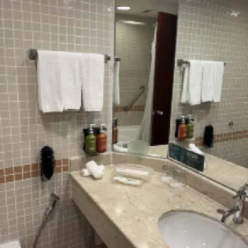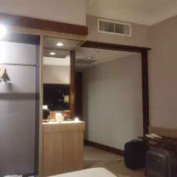 部屋はかなり広く、シャワーのお湯も快適で、冷蔵庫もとても良いです。ただ、部屋の設定が少し古く、ホテルの窓は開けられません。部屋は防音対策がしっかりされていて、朝食と夕食も美味しく、立地も良く、目の前にバス停と地下鉄の駅があり、市内までは約30〜45分で行くことができます。宿泊をお勧めします。次回もまた来ます
