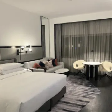 いくつかホテルを比較検討し、最終的にヒルトンを選びました。 **良い点:** このホテルはオーチャードロードで最も新しいホテルの1つだと思います。まず、レビューで多くの人が言うような国内のビジネスホテルの水準とは全く違います。ロビーから客室まで全体的な環境は良く、部屋の広さも許容範囲です。シンガポールであることを考えれば当然ですね。 フロントと客室スタッフは中国語を話せます(電話は英語が必要でした)。また、いわゆる差別的な対応を受けることもなく、全体的にとても丁寧で、辛抱強く質問に答えてくれました。 立地は非常に便利で、オーチャードロードの中間、オーチャード駅とサマセット駅の間にあります。地下鉄での移動がとても楽で、滞在中ほとんど地下鉄を利用しました(表示は分かりやすく、座席もありました)。近くのショッピングモールには多くのフードコートがあり、5階には人気のChatterbox、IONショッピングモールにはYa Kun Kaya Toastとジャンボシーフードがあり、それほど混んでいませんでした。 また、洗面台が2つあるデザインで、これはとても便利でした。 朝食は利用しなかったのでコメントは控えます。私はたいてい昼頃に起きるので、近くのレストランでブランチを済ませました。 **悪い点:** 清潔さには改善の余地があります。特に寝具で、枕には異臭があり、黒い綿のようなものも付着していました。 **総評:** 宿泊をおすすめします。現在、国内の少し良いホテルでも繁忙期には2000元以上からですが、このホテルはコストパフォーマンスが非常に高いと言えます。あと、ドリアン好きの方はぜひ99 Old Treesに行ってみてください!