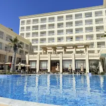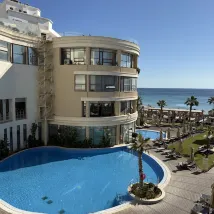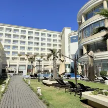 When we arrived, the hotel looked nice from the outside — but that’s where the good impression ended. From the moment we walked in, we were hit with a strong smell of cigarettes in the lobby. The reception area was poorly attended; we were handed our key with no explanation about the facilities, restaurant, or spa — we had to find everything ourselves. We booked this holiday through LoveHolidays, expecting a 5-star experience. Instead, we were given a room with a wall view instead of the promised city view. The moment we entered the room, we noticed a terrible smell. Turning on the lights only made it worse — the room was filthy. Dust everywhere, towels stained yellow and brown, mold in the bathroom, bedding full of holes, and hair all over the floor, bed, and bathroom. The carpet and furniture were covered in dust, and the mirrors looked like they’d been cleaned with a dirty mop. We complained immediately. The staff claimed to have “cleaned” the room, but nothing changed. On the third day, they offered us a different room — which somehow was even dirtier than the first. The restaurant was another disaster. Tables were sticky and filthy, and there was a constant shortage of plates and cutlery. Finding a fork or spoon felt like a challenge. The restaurant manager seemed uninterested and did nothing to improve the situation. The bar service was equally frustrating — often no one was there for 10, 15, even 30 minutes. Most of the time we gave up waiting just to get a simple drink. As for the spa, the indoor pool water was freezing cold, and the “hot tub” was about 15 degrees with most of the jets not working. When we asked staff why, the answer was simply “I don’t know.” Completely unacceptable for a place claiming to be a luxury spa. The area around the hotel felt unsafe — many abandoned buildings with men hanging around trying to approach tourists. We did not feel comfortable walking outside. The beach was the only decent part, but even that was poorly maintained. The mattresses were torn, with sponge sticking out, and the area looked like it hadn’t been cleaned properly in ages. The food overall was below average, nowhere near 5-star quality, and the à la carte option was a complete joke. In summary: This was one of the most disappointing hotel experiences we’ve ever had. The condition of the rooms, poor hygiene, lack of service, and unsafe surroundings make this hotel completely unsuitable for the 5-star rating it advertises. We are making a formal complaint with LoveHolidays, as this hotel should not be listed as a luxury property. Avoid if you expect anything close to a true 5-star experience.