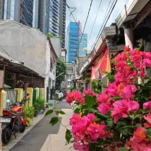 Fantastic location buried in deep in the old town Jakarta. Great roof top bar and eating!