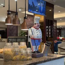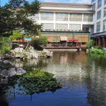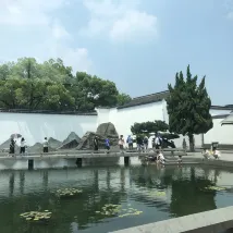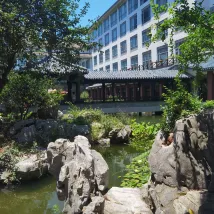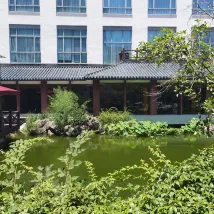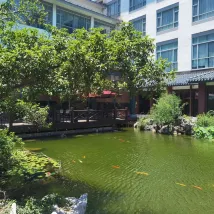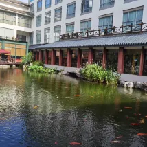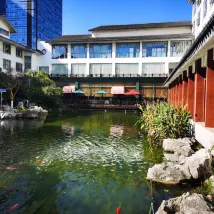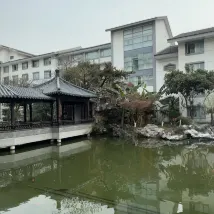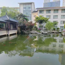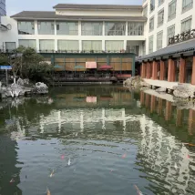 イベントのため、蘇州にあるこのホテルに宿泊しました。 かなり歴史のあるホテルで、設備は少し古めかしいですが、立地は抜群で、料金もとてもリーズナブルです。 館内は中庭と魚がいっぱいの池があり、とても素敵な雰囲気です。フロントで魚の餌を頼むこともできます。 午後には、ロビーバーで使える緑茶の券がもらえます。2人でお茶を飲みながら会話を楽しむことができ、とても楽しいです。 朝食も種類が豊富で、蘇州風の軽食が揃っています。