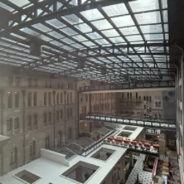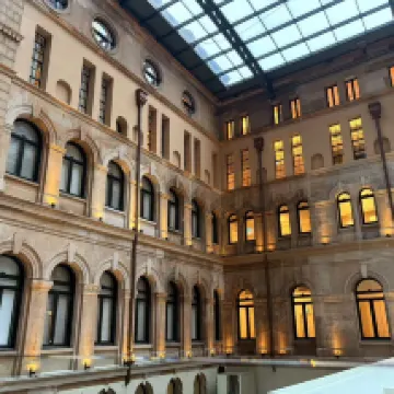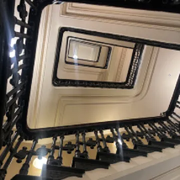 部屋は十分な広さがあり、明るく開放的で、窓からの景色も最高でした。朝食は種類豊富で質も高く、特に旧郵便局の建物を改装したロビーは印象的でした。あの階段が一番美しいですね。