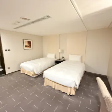 スタッフは親切で、ホテルには無料の地下駐車場がありました。部屋は広々としており、大きくて快適なベッドが2台、そしてバスタブ付きのバスルームを含め2つありました。ただし、部屋が向かいの建物に面していたため、常にカーテンを閉めておく必要がありました。 いくつか小さな不便な点もありました。洗面台にはハンドソープやタオルが常備されておらず、リクエストして初めて提供される形でした。また、片方のバスルームのトイレットペーパーの位置が不自然で使いづらかったです。ベッドサイドにコンセントがなく、3名で予約したにもかかわらず、コーヒーパックは毎日2つしか用意されていませんでした。設備も少し古さを感じました。 良い点としては、ホテルのすぐ隣にコンビニがあり便利でした。ただ、最寄りのMRT駅までは1km以上離れており、少し不便でした。 全体的にはまずまずの滞在で、台中を訪れる友人にはおすすめできます。