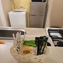 このホームステイを予約しましたが、trip.com から鍵の受け取り場所に関する正しい指示がありませんでした。飛行機に乗る前に trip.com に再度連絡しましたが、ホームステイから鍵の受け取り方法についての指示はありませんでした。しかし、trip.com のカスタマー サービスから、宿泊施設に行って問い合わせるように言われました。ここはホームステイの建物です。誰かが私たちを見つけるまで階下で待つべきでしょうか?幸運にも、別の予約サイトで情報を見つけました。そうでなければ、どうしたらいいのかわからなかったでしょう。 高松空港で飛行機を降りた後、バスで高松港まで行き、瓦町に向かいました。バスを降りた後、鍵を受け取るためにロイヤルパークホテル高松に行かなければなりませんでした。ホテルのスタッフが正しい住所と鍵をくれました。鍵を受け取った後、B&Bまで約10分歩きました。目的地に到着して部屋にチェックインした後、泊まる場所があることに安心しました。🥹 このB&Bはまるで自宅のように清潔で手入れが行き届いており、電子レンジ、調理用コンロ、洗濯機を備えた小さなキッチンが備わっています。トイレとバスルームは別々で、シャワージェル、歯磨き粉、歯ブラシ、歯ブラシタオルも完備されており、全てが良かったです。 👍🏻👍 ゲストハウスから大型スーパーマーケットまでは約7分、江東電鉄・空港バス乗り場までは約3分です👍🏻
