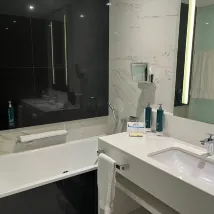 ロケーションは良く、バス停も徒歩5分圏内にありました。新しいホテルだけあって内装もおしゃれでお部屋は、ベッドも広く全体的に解放感がありました。バスタブもあります。サウナは夜9時までだったので行けなかったのが残念です。22時まで営業していただけると嬉しいです。ヒルトンは是非お勧めできるレストランです。