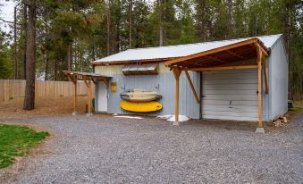 We have a covered front and back deck to enjoy coffee or an afternoon drink. The 1/2 acre lot boasts a large back yard that is perfect to enjoy the hot tub, BBQ grill or extra large fire pit. Lay in the hammock out front or in the back and enjoy a good book. We have a paddle board, a fishing kayak and a tandem kayak for your use as well as four bikes available. We have private neighborhood access to the Deschutes River less than a mile away with easy to walk streets.