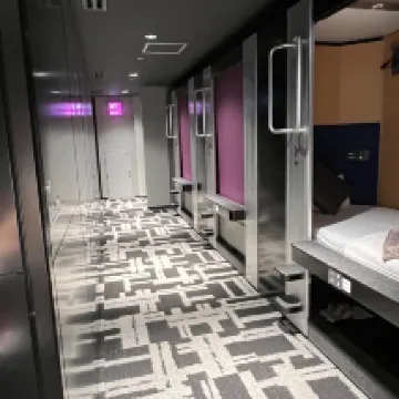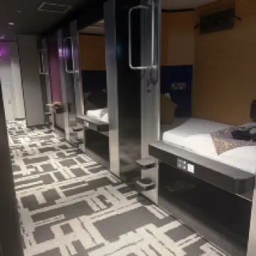 カプセルホテルでの滞在に大変満足しました。駅からも近く、ロケーションは最高です。階下には吉野家、マクドナルド、コンビニエンスストアが多数あり、とても便利でした! フロントのスタッフは皆、親切で気配りがあり、チェックインから滞在中はとても快適に過ごせました。 2階のラウンジでは食事もでき、利用されている方も皆マナーが良く、安心して過ごせました。 またぜひ宿泊したいと思います!