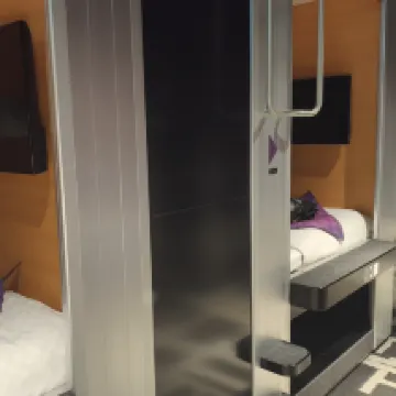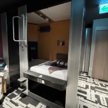 地下鉄駅から程近く、施設も新しくて予想以上に大きな個室カプセル形式のホテルです。 嬉しかったのは部屋の下段に荷物を置ける大きな空間が用意されていて、鍵も掛かるシャッターが付いているので安心です。 清潔感は文句無いですが、前の宿泊客の体臭らしき残り香を微妙に感じたので1つ評価を下げました。 ロビーは多くの客が居ますが、充分な座席数で利用したい時に使えるのが良かったです。 特筆したいのが日本の有名漫画が邦版と英訳版を揃えて置いてあった事です。 自分が好きなタイトルを同時に並べて読み味わう稀有な体験が出来て、これは本当に嬉しかったです。
