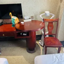 外観は高級感があるが、内装は背が低い。部屋の装飾には工夫が凝らされていて、不思議に思う。テレビ台の上に丸いターンテーブルがある。持ち帰り用の食べ物を置いているのだろうか?高すぎるようで、座っていると少し手が届きにくく、立つのも難しそう。物を置くために用意されているのだろうか?テレビの邪魔になるので、本当に不思議だ。チェックインには保証金が必要で、チェックアウト時に室内検査に合格すれば保証金は返金される。待って~これは計画経済時代への回帰ではないか?桐郷の先進的な経営理念とは相容れない!ロビーの明るさ、広さ、高さも相容れない!装飾デザイナーと社長の関係は?