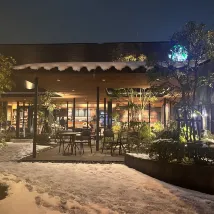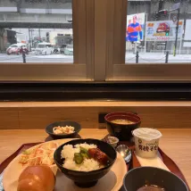 これはとても嬉しい驚きです。鳥取駅から徒歩5分、温かい温泉があります。今回の旅で唯一、天然温泉があるホテルです。外で降る雪を眺めながら温泉に浸かるのはとても詩的です。朝食もとてもおいしかったです。レストランはJR線路に面しています。朝食をいただきながら、雪景色とJRの通過を眺める、心身ともにダブルの楽しみです。一番いいのは、午後から夜9時までセルフサービスのバーがあり、さまざまな梅酒、日本酒、ウイスキーを使ったカクテル🍸を自分で作ることができることです。素晴らしい体験でした。徒歩10分のところにはイオンがあり、様々なお土産を購入できます。鳥取砂丘とコナンタウンに行って素晴らしい体験をしました