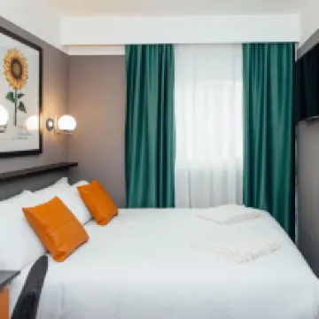 Location is not good if you want to be near any attractions. The small room is modern decor and has all you need, and the hotel provides a ticket for a welcome drink at the bar.(small prosecco). Check in took 15 minutes, and we were only ones there. Be sure to ask for a room on the backside as it is on a major street and it is noisy.
