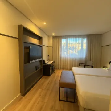 Gutes Hotel mit schönem Zimmer, großem Badezimmer, gemütlichen Betten und großen Spiegeln. Als süße Aufmerksamkeit lagen sogar halal Gummibärchen bei uns im Zimmer. Die Aussicht war eher unspektakulär (ruhiger Park). Die Lage war gut, Bushaltestellen direkt vor dem Hotel, ca. 15 Minuten ins Zentrum. Essensmöglichkeiten in der Nähe, Lidl und die City of Arts and Sciences jeweils ewa 10 Minuten zu Fuß entfernt. Wasser konnte man leider nicht auffüllen. Negativ waren außerdem der Türspalt und die hellhörigen Wände, besonders im Badezimmer. Zudem war das Personal an der Rezeption bei der Anfrage nach Mini-Kits leider unfreundlich.