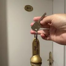 個性的なホテルでした。 立地も良く、駅や楽友協会(コンサートホール)までも徒歩10分程度でした。周辺にはレストラン、スーパー、ドラッグストアなども揃っており、大変便利です。 フロントの対応も親切で、部屋も清潔でした。朝食も美味しく、シンプルながら栄養満点でした。特にコーヒーはとても美味しかったです。 鍵も特徴的で、純銅製でずっしりと重く、外出時には皆フロントに鍵を預けていました。