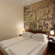 立地: 地下鉄の駅から徒歩約100メートルと近く、Ringにも隣接しています。 設備: 昔ながらのホテルですが、小ぢんまりとしていて上品な雰囲気です。部屋はそれほど広くありませんが、一人で滞在するには十分でした。 朝食: 朝食も美味しく、品数は多くないものの、必要なものは一通り揃っています。ジャズのBGMが流れ、静かで落ち着いた空間でした。 総じて、一人旅の方には非常におすすめのホテルです。