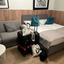 子供二人と3泊、バルコニー付きのお部屋を利用しました。ホテルはバス停からも近く、斜め向かいにはLidlスーパーがあったので、食材の調達や自炊にもとても便利でした。全体的に、非常に快適な滞在でした。ベッドも広々としていて、気持ちよく休めました。