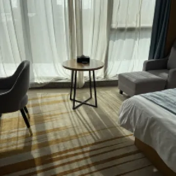 環境:緊鄰金海湖公園,落地窗景色超棒。 服務:服務人員很給力,幫忙找到落下的衣服。 衞生:房間很大且舒服,下次還會再選擇。 整體屬於性價比比較高的選擇。