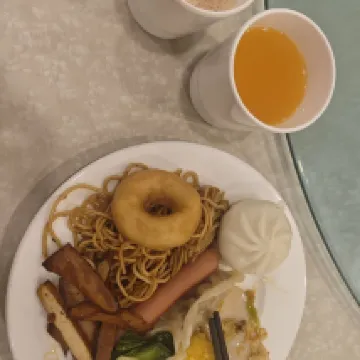 朝食は美味しく、ライブで熱干麺も作ってくれる。飲み物は全てホットなので、冷たいものもあると良かった。