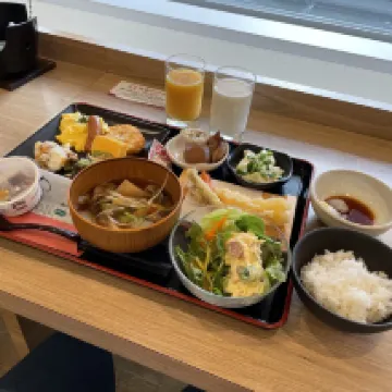 日本のホテルの部屋はどこもコンパクトですが、こちらの朝食は種類も豊富でとっても美味しかったです。フロントのお姉さんもとても優しく、セルフサービスのコーヒーとアイスクリームもあり、大満足でした。