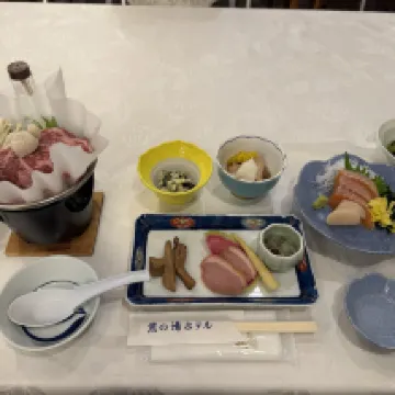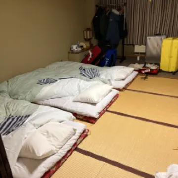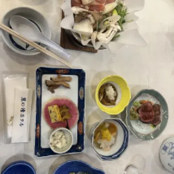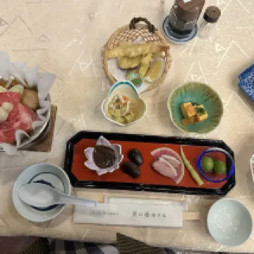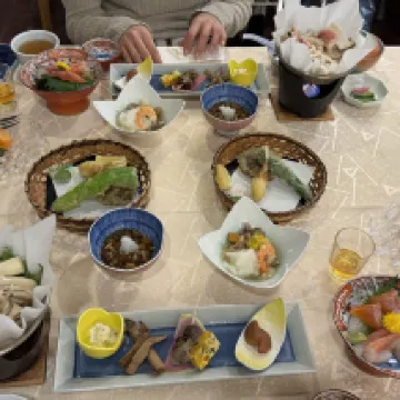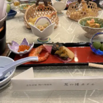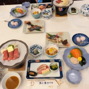 ホテルは少し古いですが、 でもきれいだよ お湯は十分に熱く、部屋の備品も充実しています。 暖房は適度で、暑すぎず、寒すぎず。 ホテルは遠く、近くにコンビニもありません。 ホテル内にはコイン式のドリンクマシンと小さなショップがあり、 ただし、遅くまで営業しているわけではありません。 ホテル内に温泉があるので、外で探す必要はありません。 便利ですよ。 朝食はビュッフェスタイルで、毎日あまり違いはありません。 夕食は毎日少しずつ違っていて、とても美味しいです!