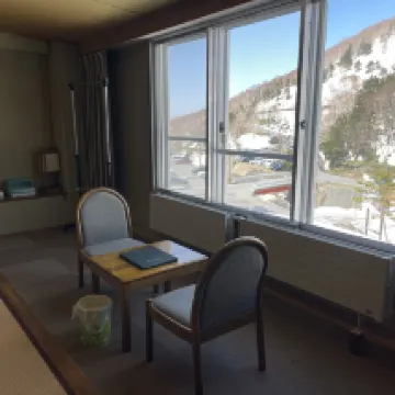 熊の湯スキー場に隣接する、24時間営業(清掃時間を除く)の天然温泉を備えた少し古いホテル。素晴らしい和朝食セットと夕食セット。この時期(4月中旬)は雪がたくさんあるので混雑していません!