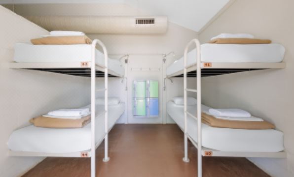 ベッド4台の男性専用ドミトリー(客室料金は1名あたりで算出)