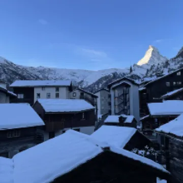 当ホテルはツェルマットの町の中心部という非常に良い場所にあり、ツェルマット駅からは徒歩わずか 5 分で、どこに行くにもとても便利です。ホテルは木造で、部屋はとても広くて快適で、ダブルのバスルームとバルコニーも付いています。ホテルの装飾もとても丁寧です。素晴らしいです!マッターホルンに面したバルコニー付きの部屋に泊まったのですが、値段は決して安くはありませんでしたが、バルコニーに立つとまるで油絵のようにマッターホルンが目の前に現れ、とても価値があると感じました。