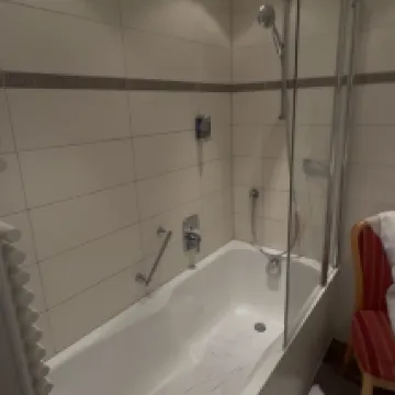 客室の浴室設備は不十分で、安全性にも疑問があります。浴槽の網戸は3分の1しか水が溜まっておらず、入浴時に水が跳ねて床が非常に滑りやすくなっています。また、浴槽の網戸はしっかりしていないため、注意しないと滑って転倒しやすくなります。
