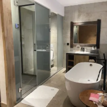 客観的な評価からすると、部屋はとても広く、小さな中庭もあり、数日以上滞在する人に非常に適しており、ゆっくり滞在できるホテルです。バーもあり、環境はとても良いです。 1泊だけの滞在で急いで出発したため、環境や便利な設備を十分に体験できずに残念でした。 体重計などハウス内の設備も充実!使い捨て用品も色々あるし、小さな果物ももらえるので嬉しいです。デメリットはエアコンの暖房効果があまりないことです