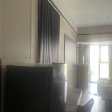 設備齊全,空間分布很舒適,房間有獨立的小小洗衣房和小架子晾衣服,窗簾有遙控器控制,躺在窗台休息椅看投影電影很享受,還能看江景,性價比很高