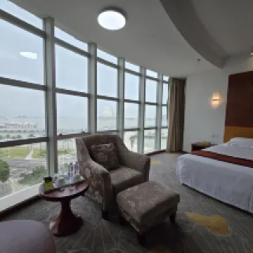 ホテルは地理的に絶対的な優位性を持っています👍、海を隔てて珠海のランドマークである日月貝に面しており、近くには野里島公園、明亭公園、海浜公園、海天駅などの多くの公園があります。香州島港も近くにあります。珠海博物館と珠海計画博物館までは徒歩約 20 分です。博物館の隣に「象山雲路」があります。珠海フィッシャー ガールから右折してシティ バルコニーと愛郵便局まで約 20 分歩きます。灯台までは徒歩約30分です。99番バス、9番バスもご利用いただけます。ホテルを出て左折し、陽明広場(ショッピングモール)や珠海百貨などまで徒歩7~8分ほどです。バス停も10箇所近くあり大変便利です。周りにはおいしい食べ物のお店がたくさんあり、美しい景色を楽しみながら食事を楽しむのがおすすめです。